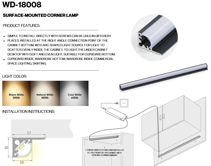 SURFACE-MOUNTED CORNER LAMP